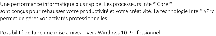 Que vous gériez une petite entreprise ou le département TI d'une grande entreprise, vous pouvez faire confiance à la fiabilité, la facilité d'utilisation et la productivité de ces ordinateurs de bureau, sans parler de leurs caractéristiques écologiques. Choisissez parmi plusieurs formats et laissez ces outils d'affaires s'occuper du reste.